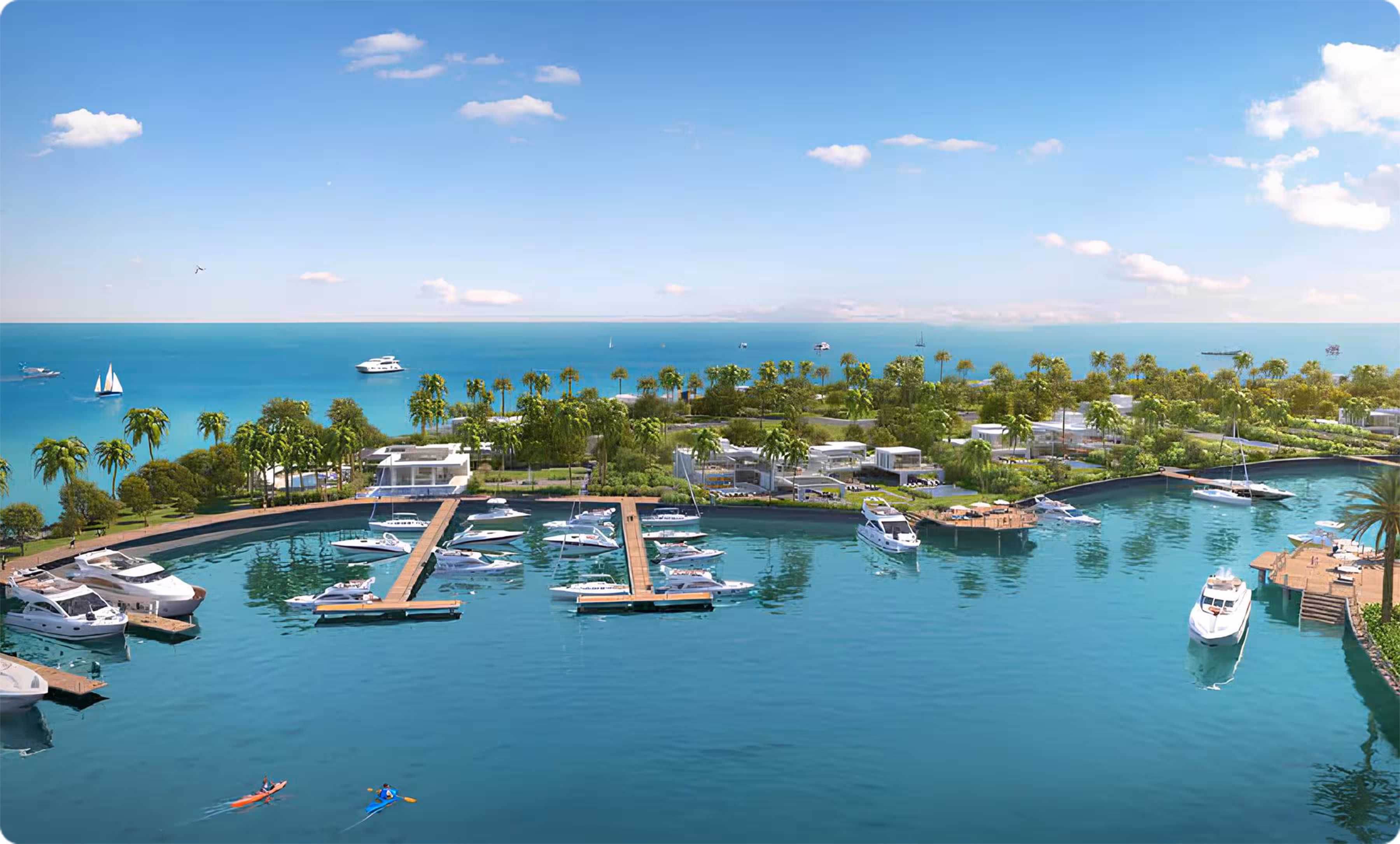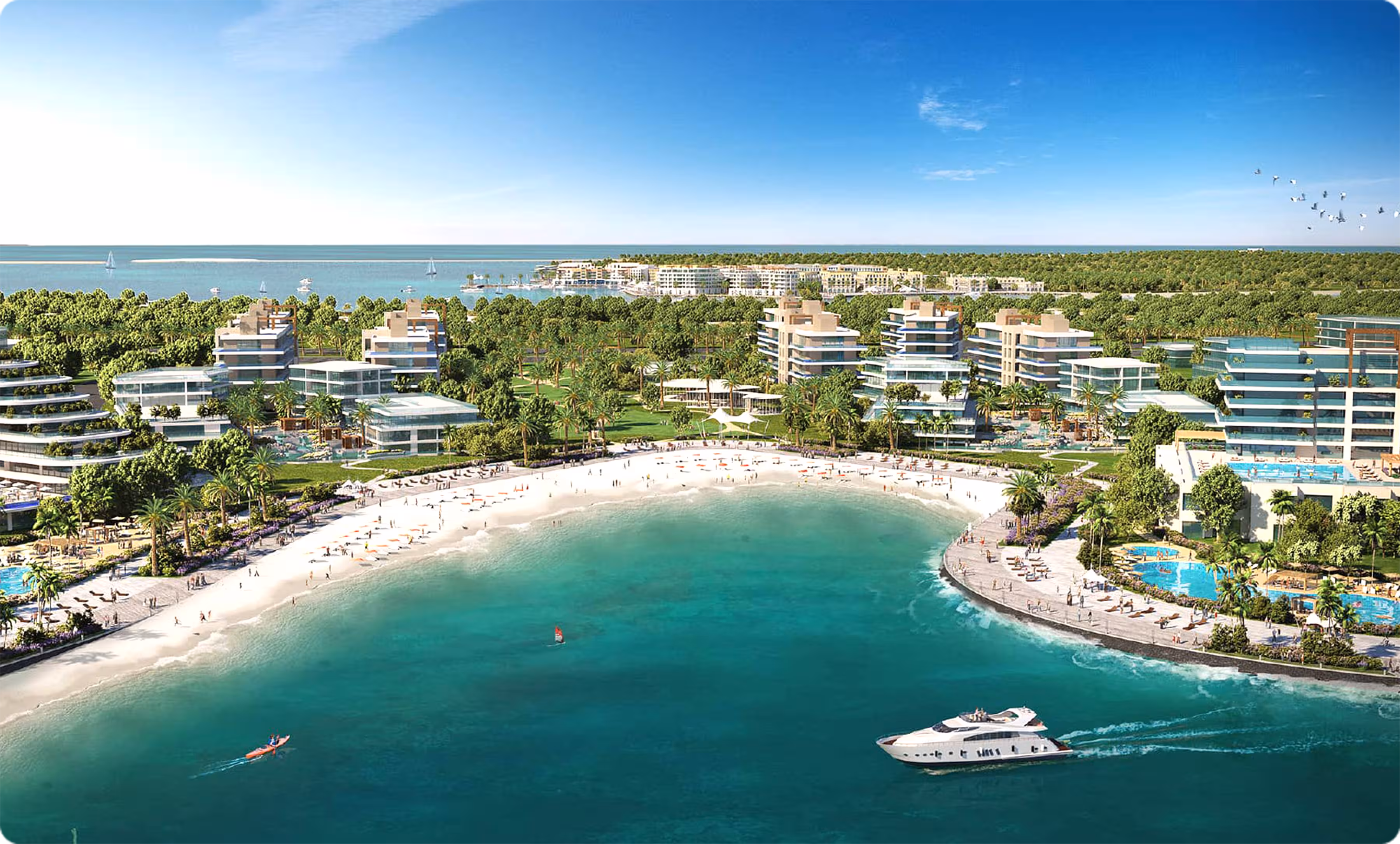 A sophisticated waterfront district, seamlessly integrating luxury living with green spaces, beaches, and shopping. Glamorous marinas, boutique cafes, art galleries, and scenic promenades enhance the lifestyle in this upscale enclave.